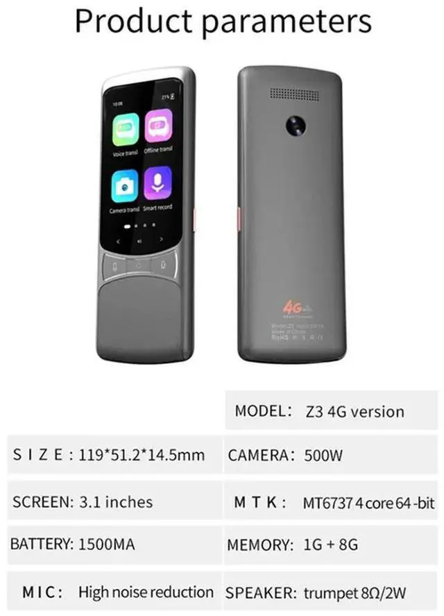 • Z3 4G Voice Translator 134 Languages Photo Recording Travel-Friendly ligent Translation Device