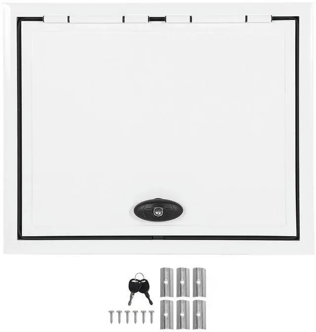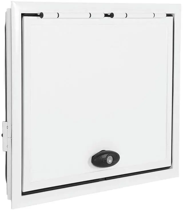 • 20 X 12in RV Baggage Trailer Cargo Hatch Door Safety Lock Aluminum Alloy Frame 120 Deg Opening UV Resistant for Campers Caravans