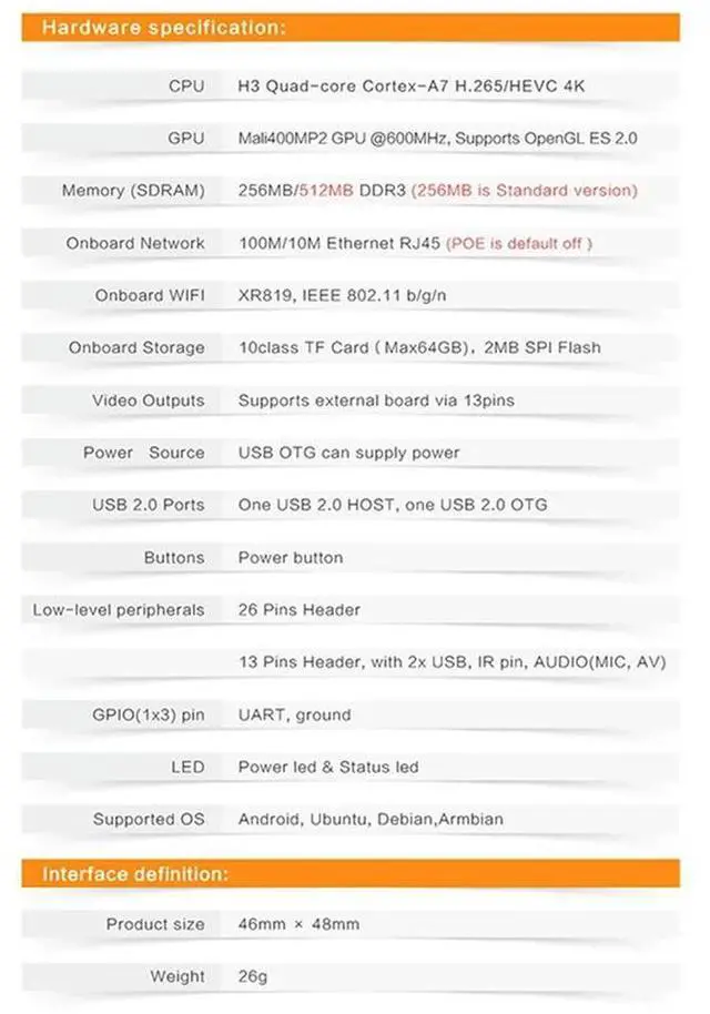 • 5X For Orange Pi Zero LTS 512MB H3 Quad-Core,Open-Source Single Board Computer, Run Android 4.4, Ubuntu, Debian Image