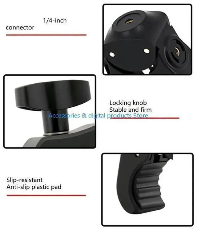• Double 1/4 Thread Mount Clamp Clip Secure Attachment Mic Stands Tripods Multiple Position Mount Holder 2025 Dropping
