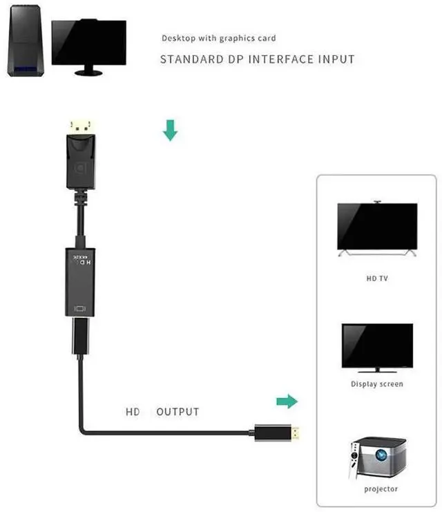 • 4K Big DP to HDMI-compatible Converter Displayport Male to Female Cable Splitter TV Monitor ProjectorVideo Audio Extend Adapter
