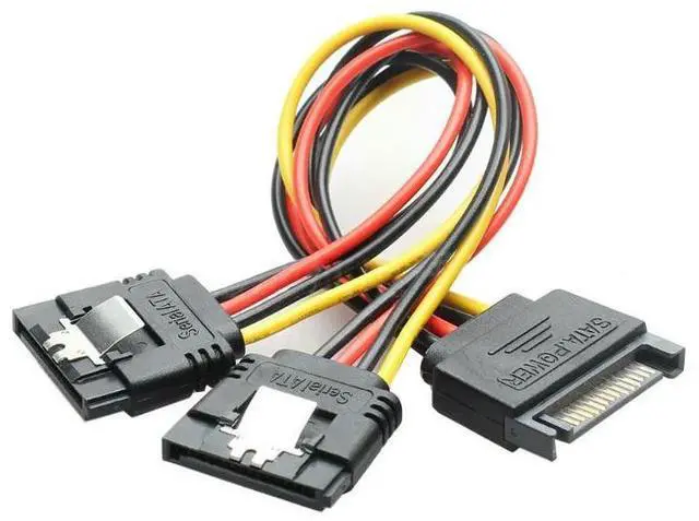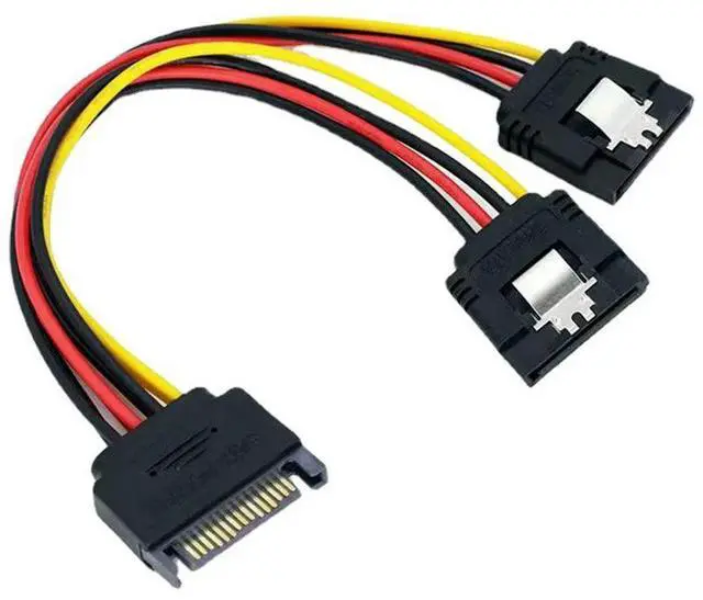 • SATA 15 Pin Power Cable Splitter 1 Male to 2 Female Plug Extend Wire Adapter with Lock Buckle Sata Power Supply Cord PC SSD Line