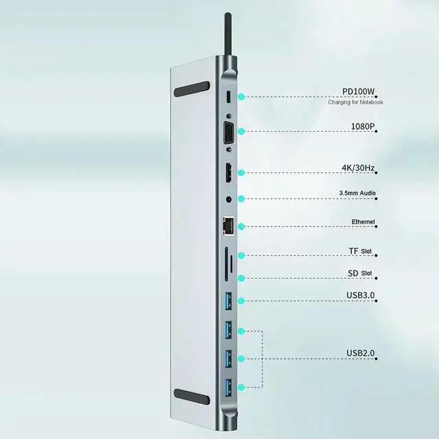 • Type C Hub 100W PD Charger Adapter HDTV 1080P 4K 30HZ Audio 100 Mbps RJ45 Ethernet Cable Splitter USB Disk Micro SD TF Card Read