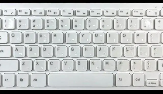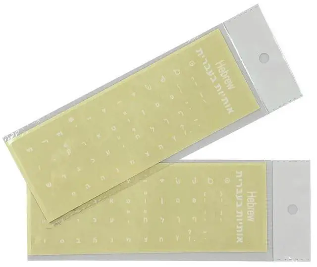 • White Hebrew Alphabet Sticker on Transparent Background, Laptop and Desktop Keyboard
