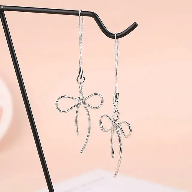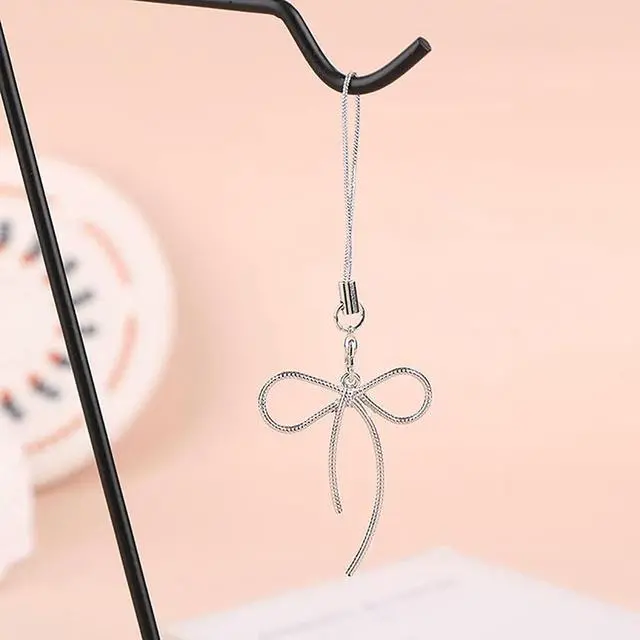 • 1Pc Korean Y2K Simple Silver Bow Phone Charm Bowknot Lanyard Cell Phone Chain Keychain Accessory for Girls