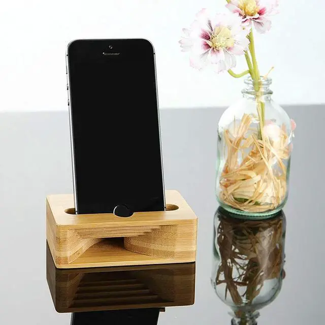 Phone Holder Stand Amplifier Cell Speaker Wooden Desk Wood Bamboo Sound Mobile Bracket Desktop Tablet Car Shower Cellphone Dock