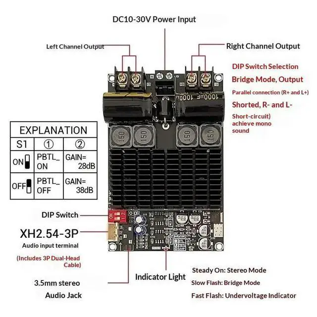 • 1pc -Bridged Mono Subwoofer Speaker Pure Rear Stage ZK-2001 TPA3221 100WX2 Dual Channel Digital Amplifier Board 200W AMP