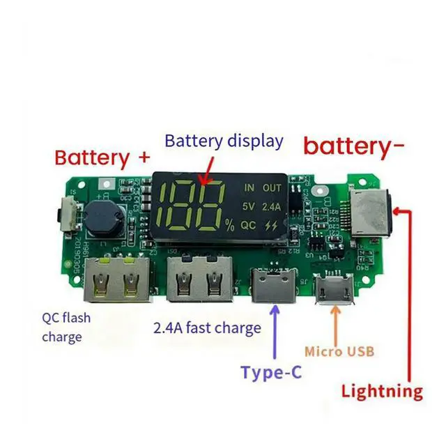 2X Lithium Digital Display Charging Module 5V 2.4A Three Charging Port With Display Boost Module