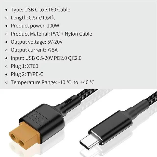 • Charging Cable USB C To XT60 Adapter XT60 To Type C PD 100W 20V/5A For Toolkitrc SC100 M7 M6 M6D M8S Charger 1M Charger Ca