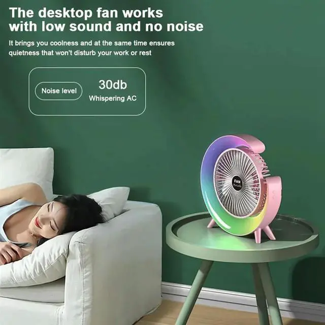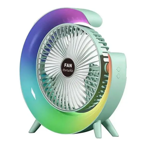 Fan USB Rechargeable Fan LED 7 Colors Electric Fan 180°Adjustable Camping Fans 3 Speeds Mini Desktop Fan