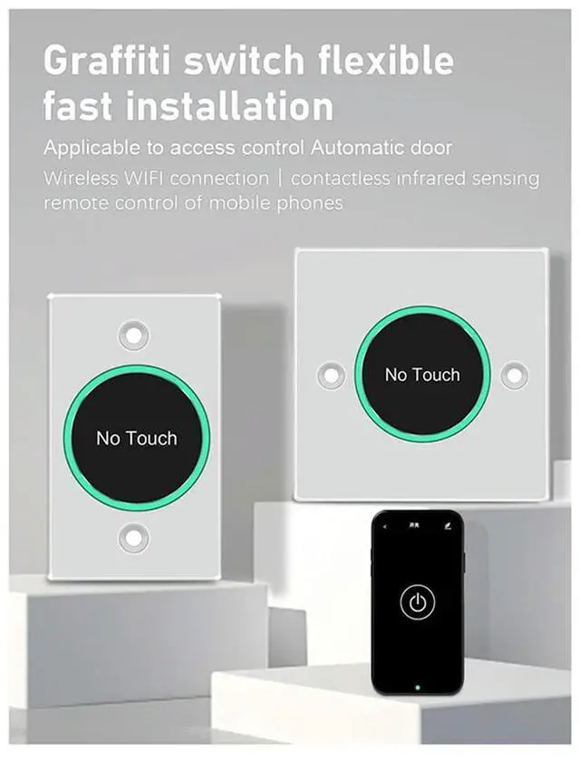 • Tuya Switch Door Exit Push Release Button No Touch Infrared Induction For Access Control Remote Control