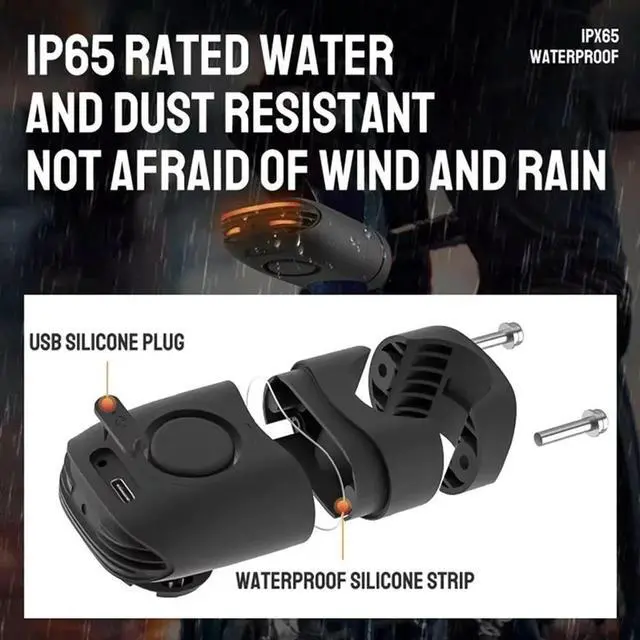 • Bike Tail Light Bicycle Anti-Theft Alarm Tail Light 3 In 1 IP65 Waterproof One Touch Arming Night
