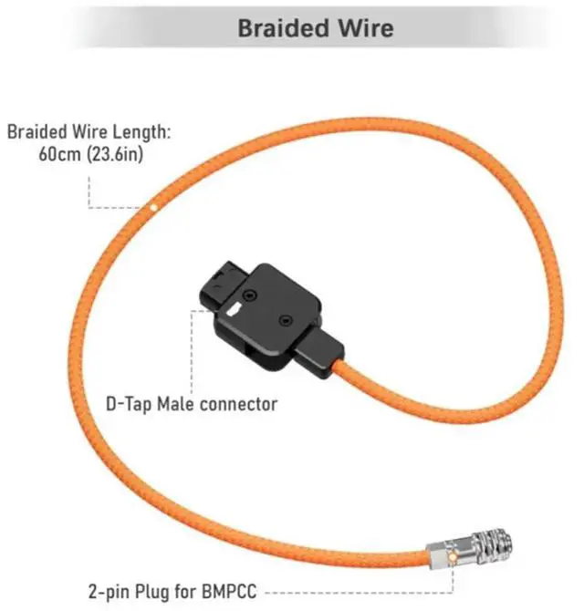 • DT-BMD Power Cable 60Cm D-Tap To 2-Pin BMPCC 180° Rotatable Braided Wire For Blackmagic Pocket Cinema Camera 4K 6K