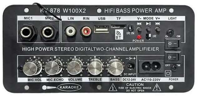 • DIY For Home Theater Car Stereo Digital Bluetooth Amplifier Board 2 Channel Dual Microphone Karaoke Amp Speaker EU PLUG