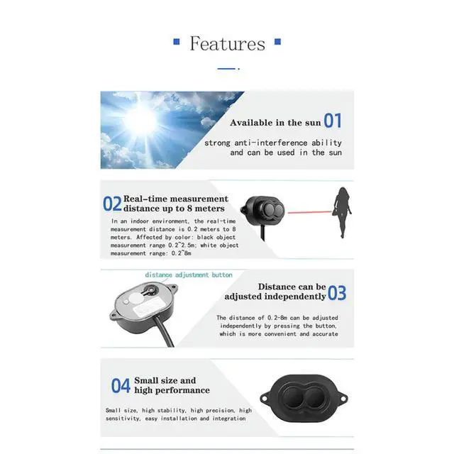 • XKC-KL800 20248M Laser Distance Sensor,DC5-24V Laser Optical Proximity Switch,Infrared Motion Sensor