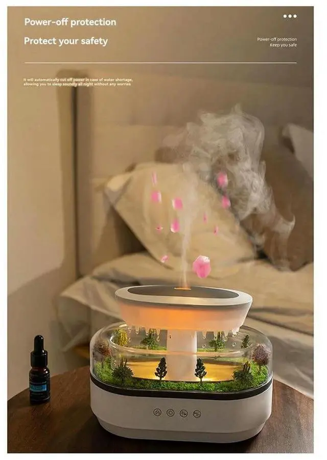 • Aroma Humidifier Fragrance Diffuser Raindrop White Noise Colorful Light Essential Oil Diffuser US Plug