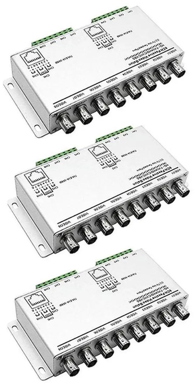 3X 8-CH UTP 720P/1080P HD Passive Video, BNC To Cat5/5E/6 RJ45 (T568B) UTP Cable Converter Video Transmitter
