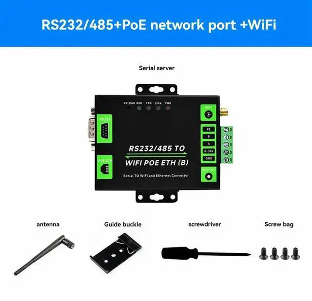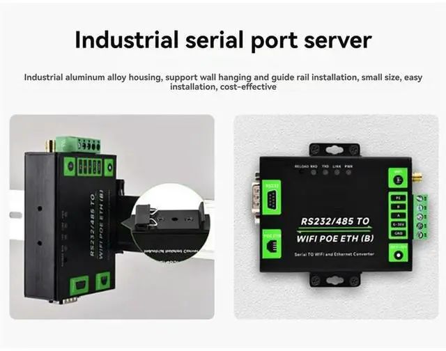 • Industrial Grade Serial Server RS232/485 To And Ethernet Modbus Gateway, MQTT Gateway POE Network Port