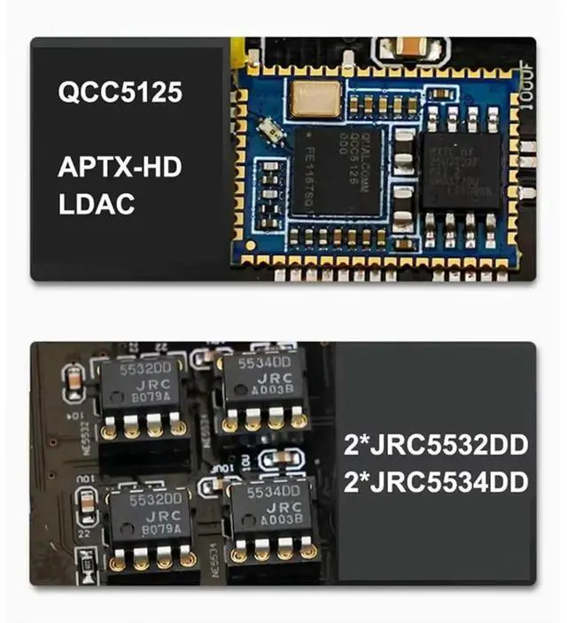 • LDAC APTX-HD QCC5125 ES9038Q2M DAC Board USB Bluetooth JRC5532DD JRC55324DD HIFI Sound Decoder