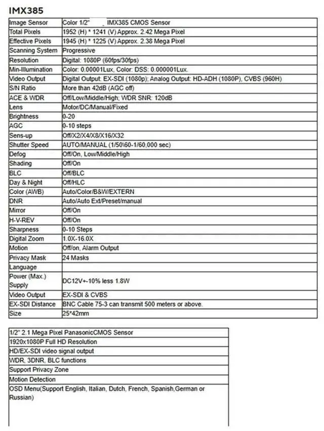 1080P 60Fps 25X42mm EX-SDI HD-SDI Industrial Camera Module Board Low Temperature Resistance