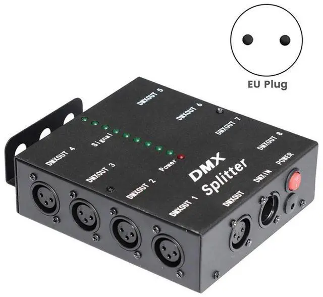 • 2X DMX512 Spillter 8 Ports Channels Isolated 3Pin Optical Istribution Amplifier For DJ Disco DMX Stage Lighting EU Plug