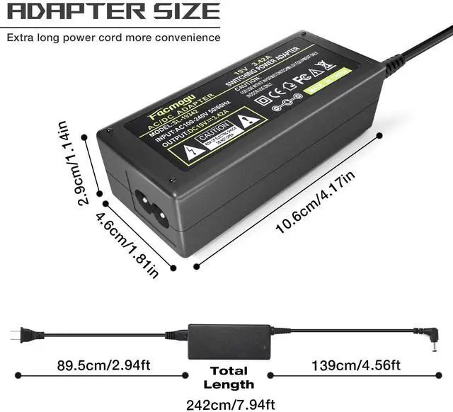 Facmogu DC 19V 3.42A Power Adapter, 65 Watt AC 100-240V to DC 19Volt Switching Power Supply Product Description