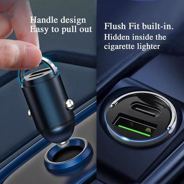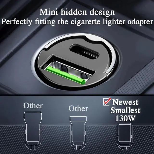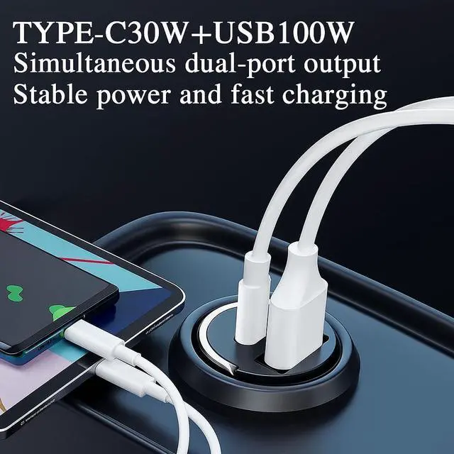 This product is made of all zinc metal and has excellent durability, stability, and heat dissipation performance. Mini hidden embedded design, smooth with cigarette lighter. The USB port can reach a maximum of 100W, and the Type-C port can reach a maximum of 30W, allowing for stable high-power output simultaneously