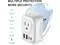 This power adapter with 2 America Outlets and 4 USB Charger Ports accepts the standard N American 2 or 3-prong flat pin plug and USB charging, without blocking each other.