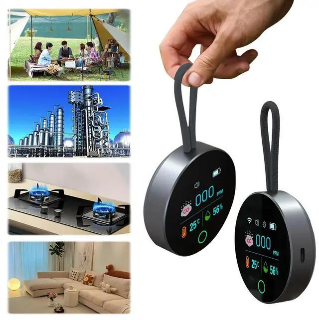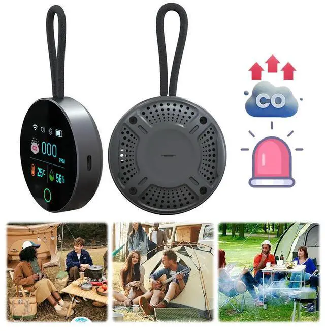 • 3 In 1 Carbon Monoxide Detector Rechargeable CO Air Monitor CO Temperature Humidity Detector for Outdoor Camping RV Car