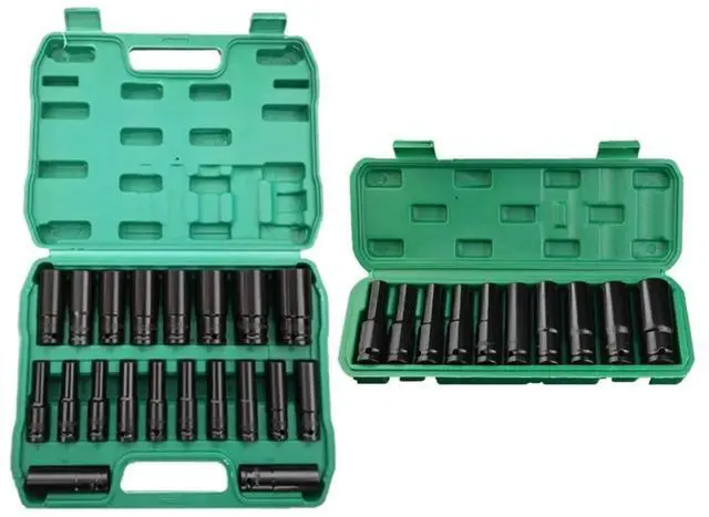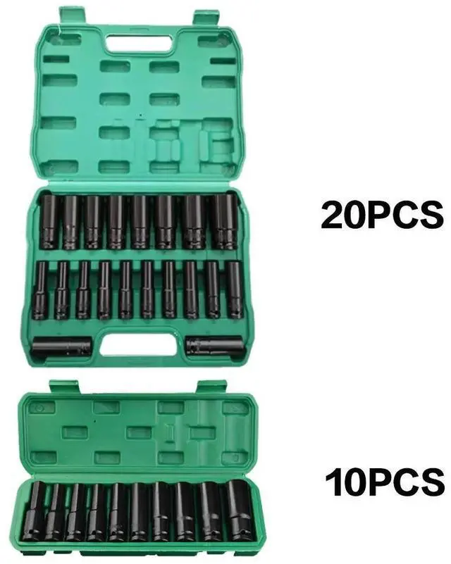 • 1/2 Inch Extended Electric Wrench Socket Set Deep Socket Set Hexagonal Hex Socket Set with Box Air Pneumatic Repair Tool