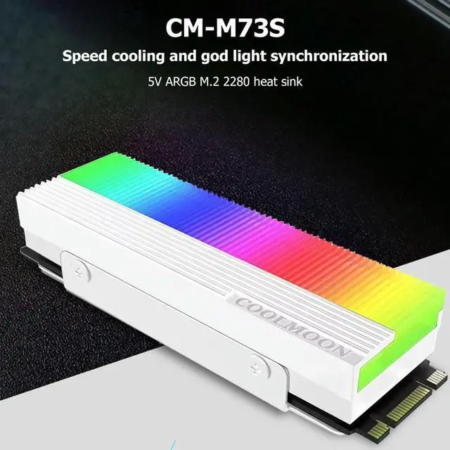 • COOLMOON M.2 2280 SSD Heatsink Cooler 5V 3Pin ARGB Colored Solid State Drive Hard Disk Cooling Radiator Cooler with Thermal Pad
