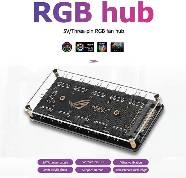 • 10 Ports RGB Fan HUB PC Computer Desktop 5V 3PIN ARGB Extension Splitter SATA Power Adapter for