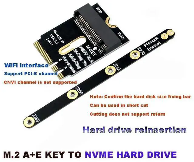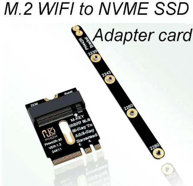 • Mini PCs M.2 A E Key to NVMe SSD Adapter Caliper Slot to PCIE 4.0 x4 Converter Aluminum Heatsink for Laptops Expansion Card