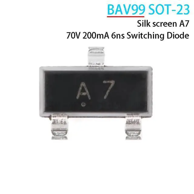 • 100PCS BAV99 Silk Screen A7 SOT-23 70V 200mA 6ns Switching Diode