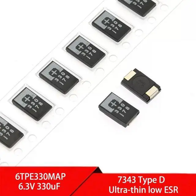 • 5PCS SMD Tantalum Polymer Capacitor 6TPE330MAP 6.3V 330uF 7343 Type D Ultra Thin Low ESR