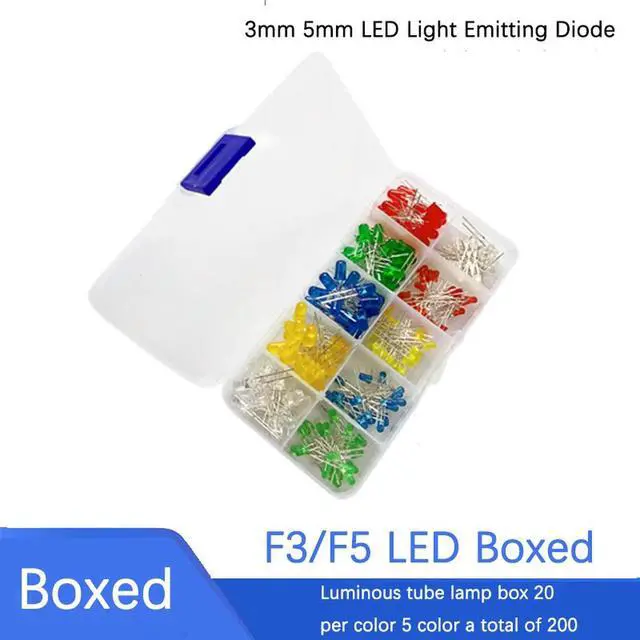 • 200PCS F3 F5 3mm 5mm LED light emitting diode boxed luminous tube lamp box 20 pieces per color 5 color total 200