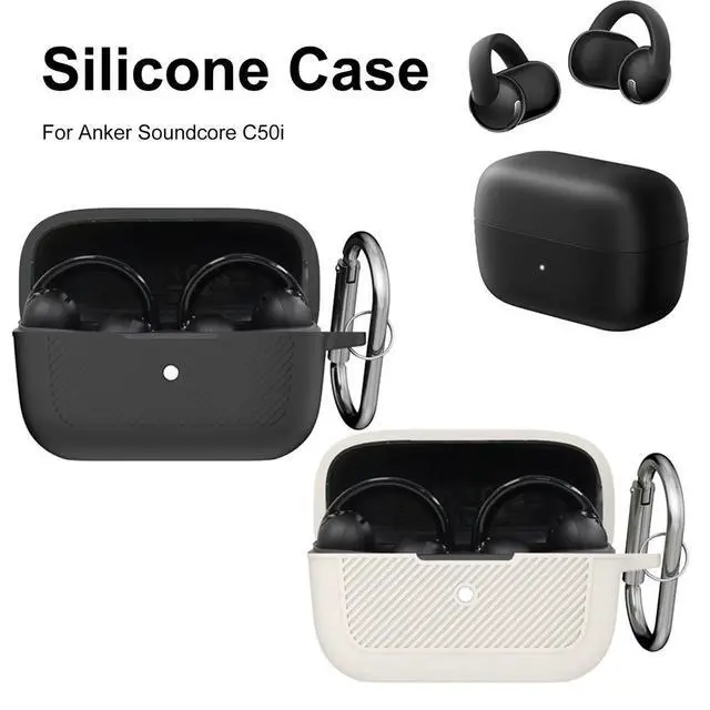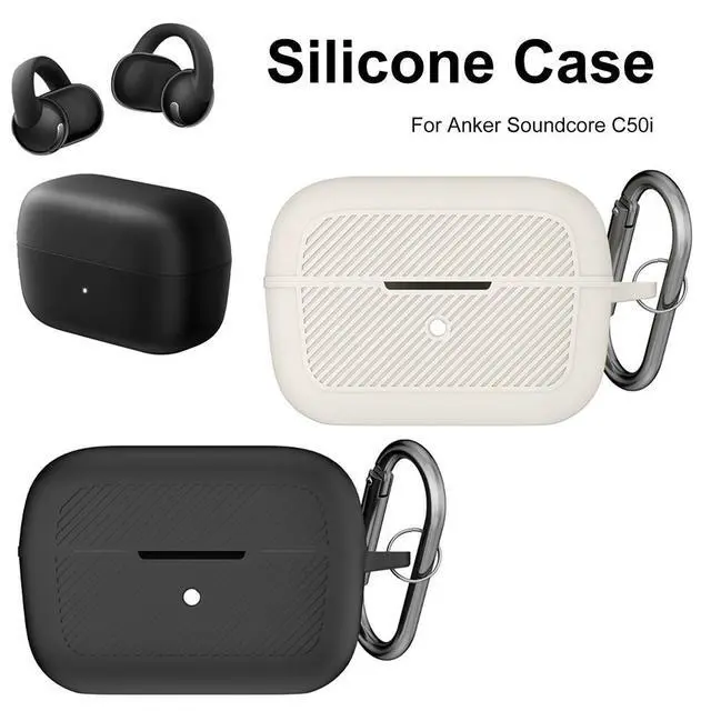 • Silicone Case For Anker Soundcore C50i Earbuds Charging Case with Carabiner Full Body Protective Cover Headphone Accessories