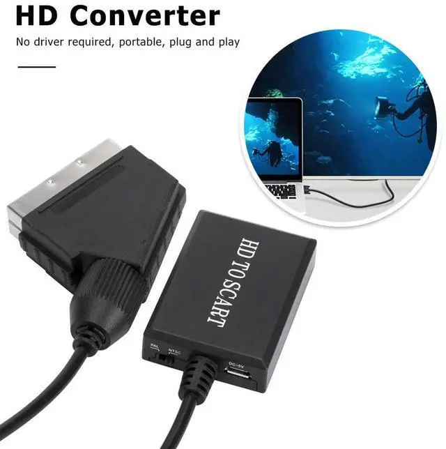 • Portable SCART to HD-Compatible Converter with Cable Converter 720P / 1080P Switch Video Audio Adapter for HD TV DVD
