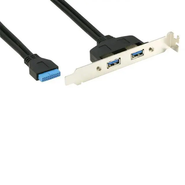 2 Ports USB 3.0 Female Back Panel to MB 20pin Header Connector Cable Adapter with PCI Slot Plate Bracket