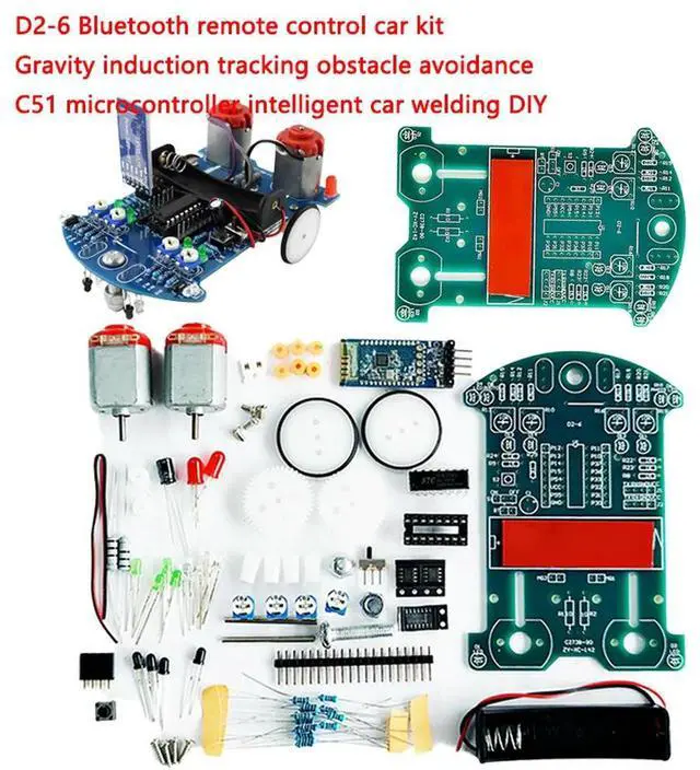 • D2-6 Bluetooth remote control car kit Gravity induction tracking obstacle avoidance C51 microcontroller car welding DIY