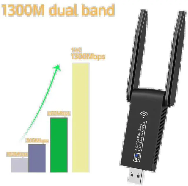• 1300M Dual-Band USB Wireless Network Card Desktop Laptop Bluetooth Wireless Network Card Two-In-One Driver-Free Receiver