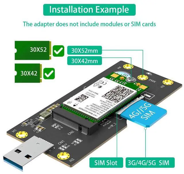 NGFF(M. 2) to USB 3.0 Adapter with SIM 8pin card Expend Kit Slot for 3G/4G/5G Module 3042/3052 Type NGFF(M. 2) Key B card