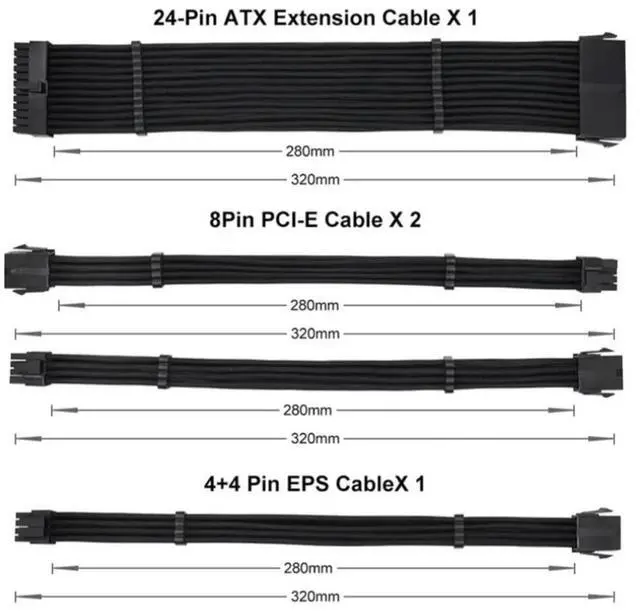 • 30cm 24 Pin ATX PSU Connectors Sleeved Cable Extension Kit for Power Supply Cable Kit for ATX CPU GPU Modular Power Supply Unit