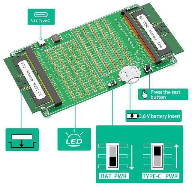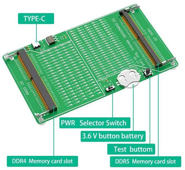 • Laptop DDR4/5 Memory Test Card SO DDR4/DDR5 Diagnosis Card PCB Circuit Test Tool for Laptop DDR4/5 Memory Stick LED Indicators