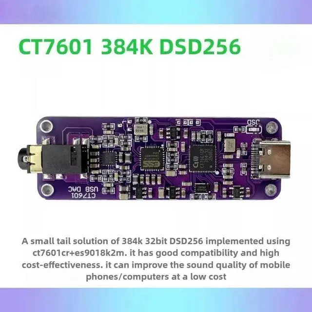 • HIFI CT7601+ES9018 Headphone Amplifier Type-c Digital DSD Hard Decoding Mobile Phone Small Tail 384K DSD256