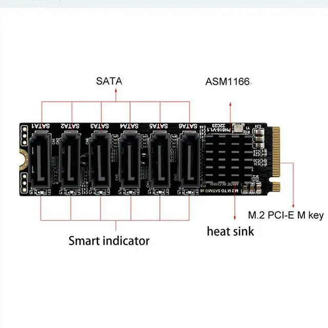 • M.2 to SATA3.0 Adapter Card 6Gbps High Speed M.2 PCIE to SATA Expansion Card with Indicator NVME PCI-E Adapter Card