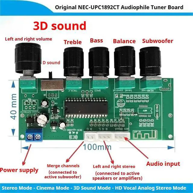 HIFI Bluetooth 5.3 Preamplifier Turning Board UPC1892CT Lossless USB Drive AUX Playback