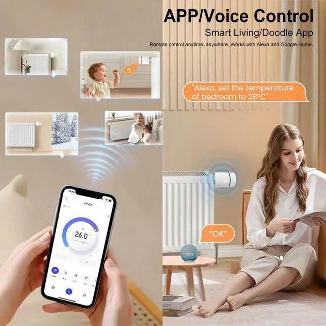 • Tuya For ZigBee Thermostatic Valve Radiator Thermostatic Radiator Valve Head Temperature Controller with Alexa Google Home