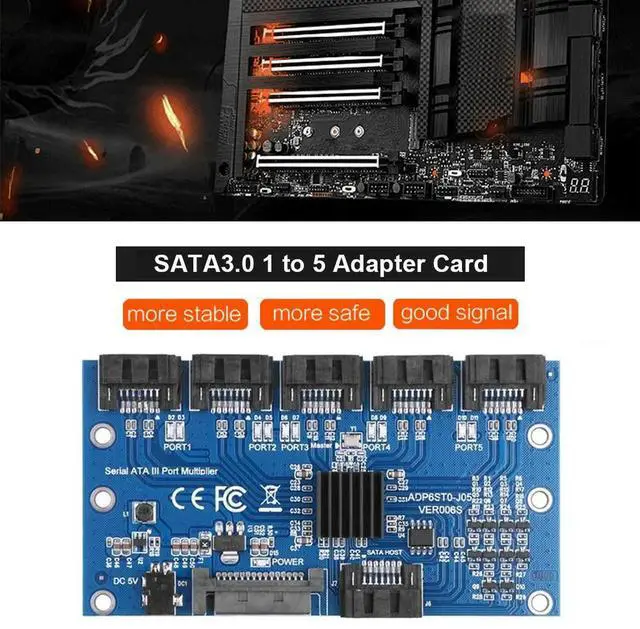 • SATA Riser Expansion Card 1 to 5 Port SATA3.0 Motherboard 6Gbps Multiplier SATA Port Riser Card Adapter for HDD Computer Card