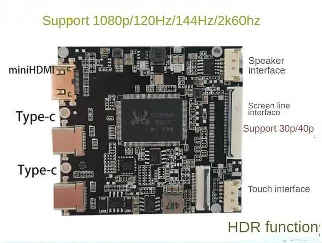 • Type C EDP Portable Display Driver Board supporting HDR 1080P 120Hz 144HZ 2K 60HZ 5V-20V